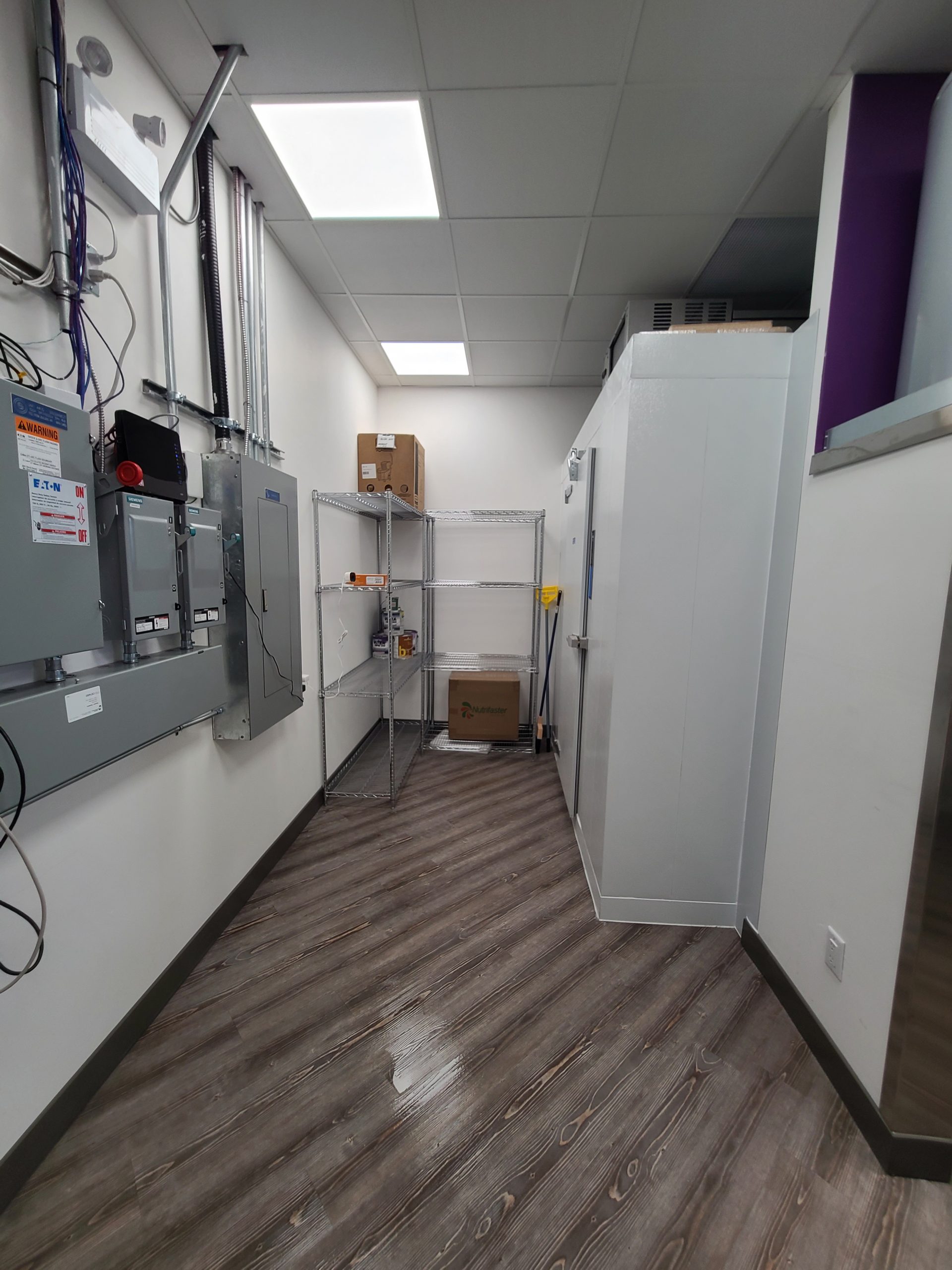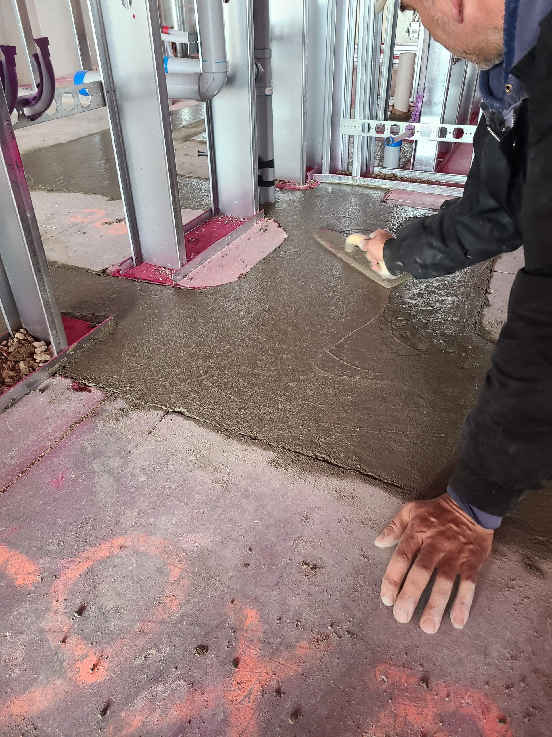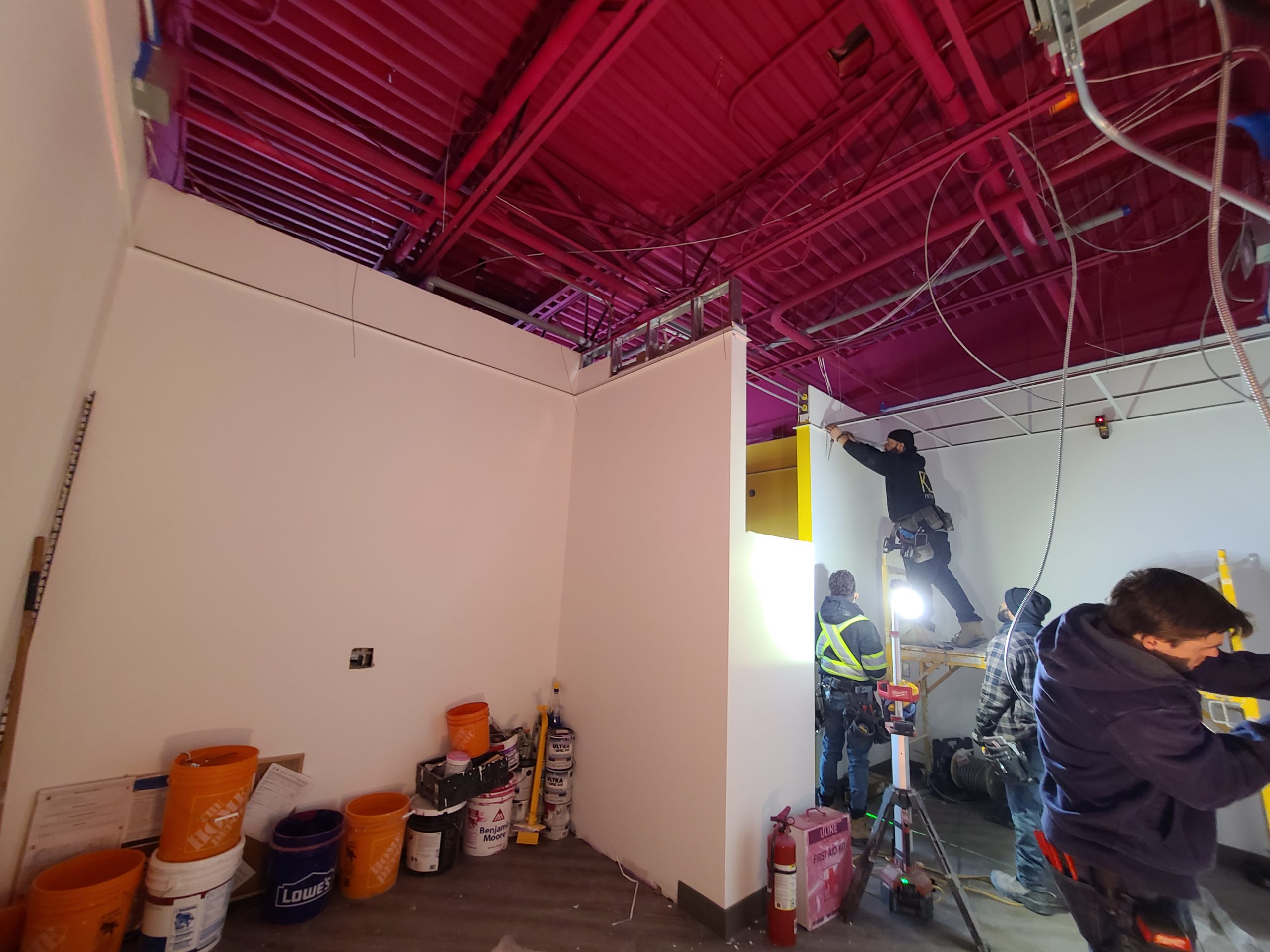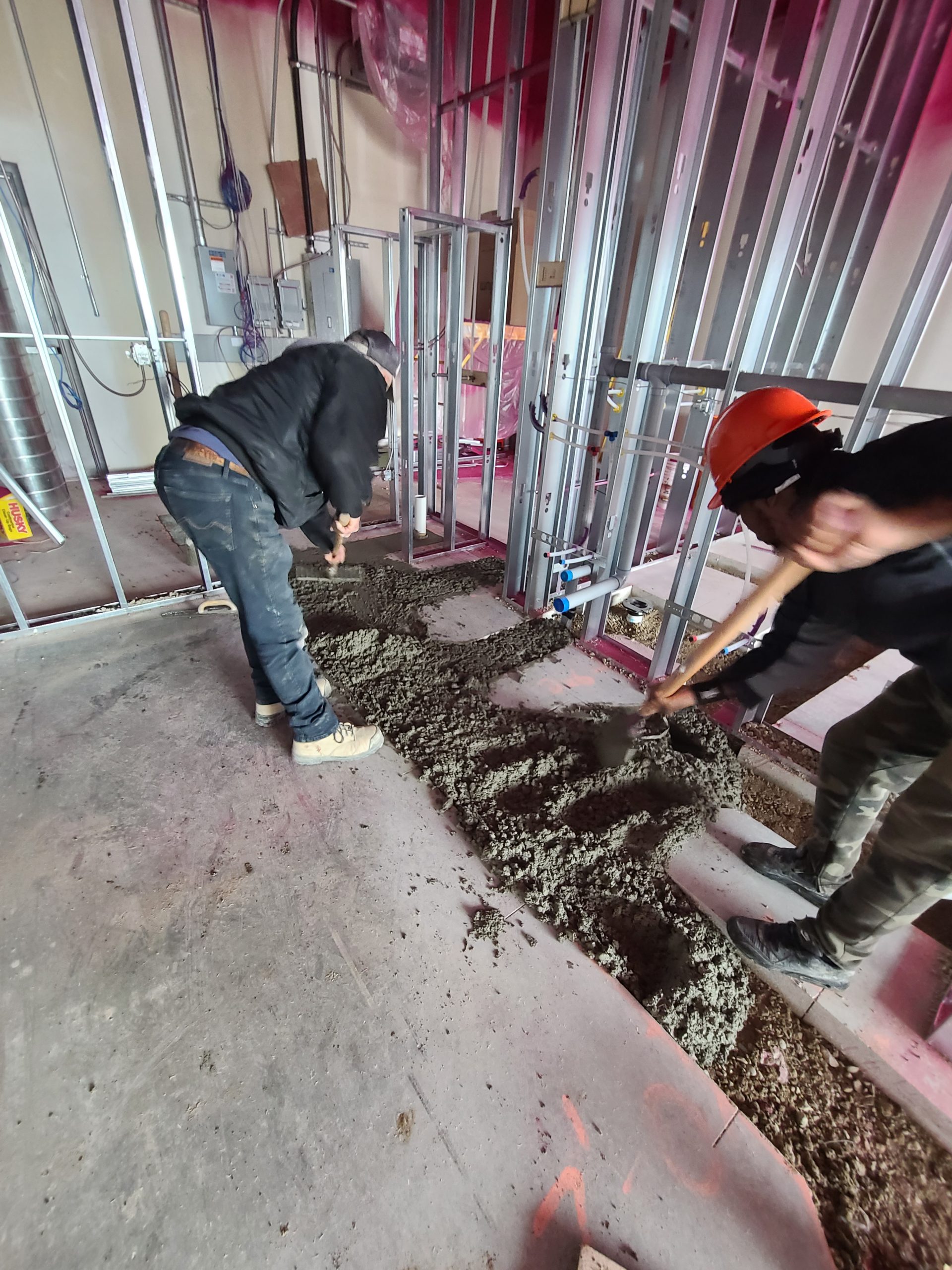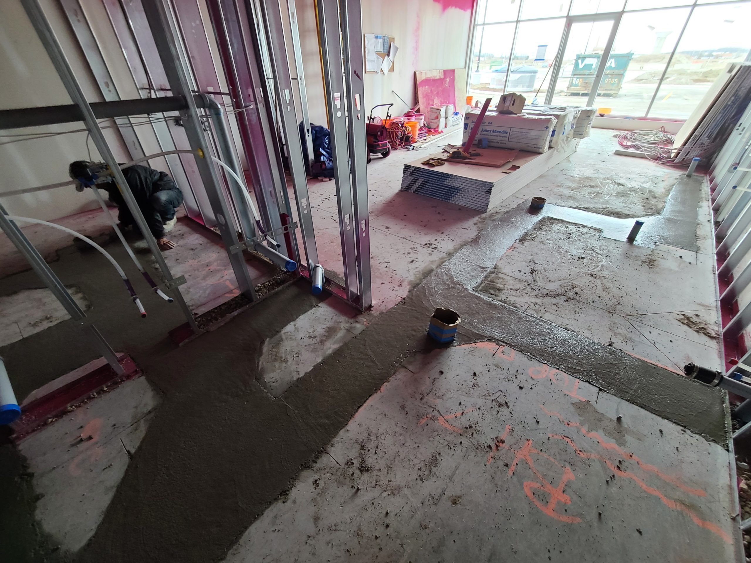 Previous condition: New base build with bare concrete floors, exposed steel deck, no partition walls