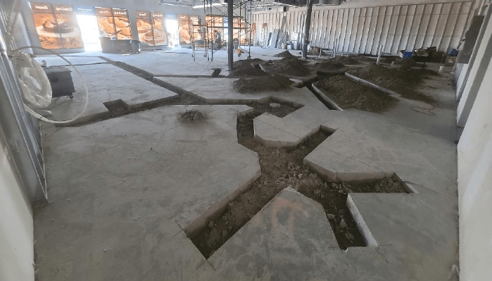 Previous condition: New build with bare concrete floors, exposed steel deck, no walls