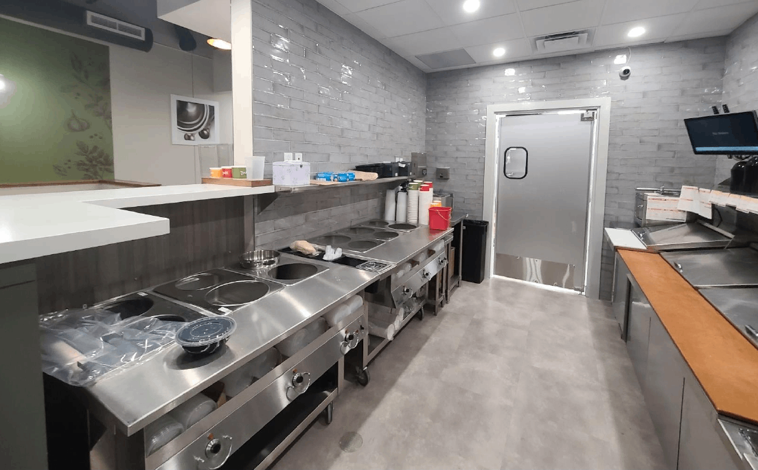 Scope: 1800 sq. ft. restaurant build. End-to-end construction, with underground plumbing, framing, new electrical, HVAC with welded ductwork, commercial hood with fire suppression system, plumbing, millwork and wainscoting installation, flooring, painting, tiles, and all city inspections with air balance.